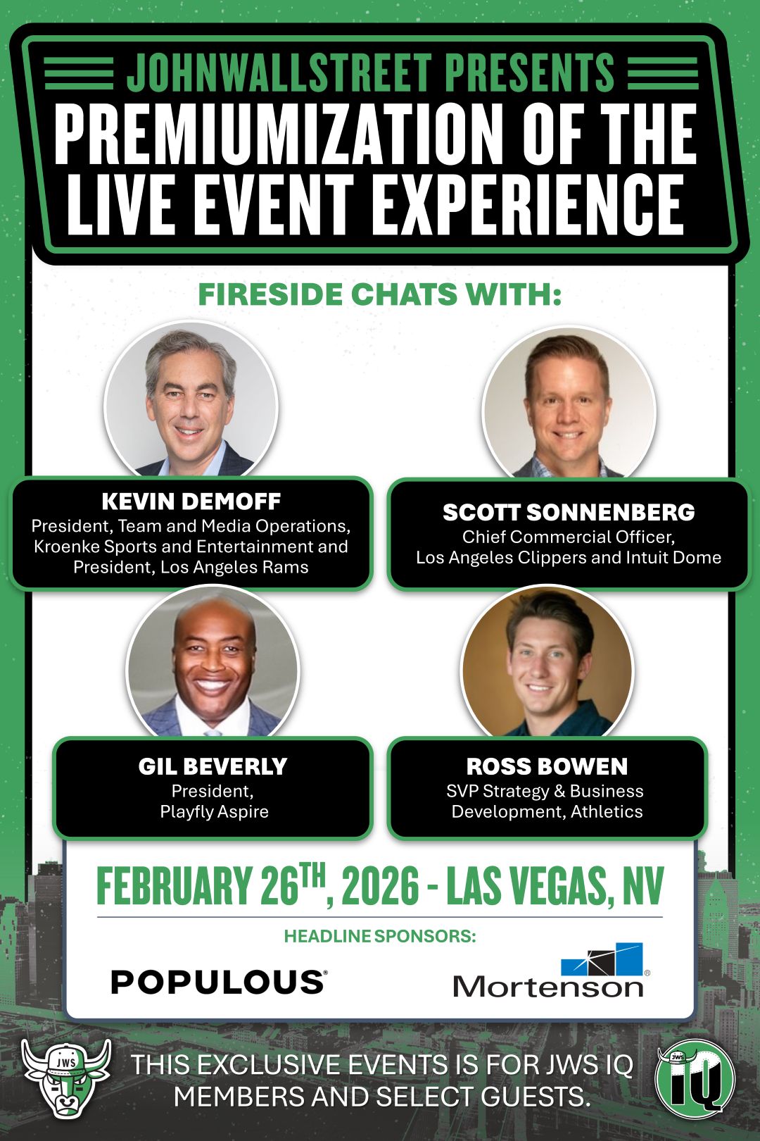 JohnWallStreet is bringing a collective of senior leaders across the industry together for a half-day of interactive conversation and high-level networking. We’re going to explore how premium strategy is reshaping pricing, packaging, sponsorship, and corporate hospitality, surface real-world learnings from new builds and legacy renovations, and debate what ‘best in class’ means within a sports context moving forward.
